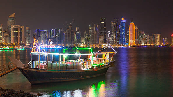 Enjoy a memorable evening cruising along Dubai Creek on board our traditional wooden dhow. Cruise by Dubai's illuminated skyline at night, offering sights of traditional and modern architecture side by side. 'Abras' (water taxis), old trading dhows, luxury yachts and modern architecture like the National Bank of Dubai, Chamber of Commerce & Industry building, Sheikh Saeed's House, and the Heritage Village are some of the impressive sights to enjoy. As a good blend of Arabic and international music soothes your ears, a sumptuous buffet dinner with a wide array of continental and oriental dishes, along with an excellent selection of beverages, is available.